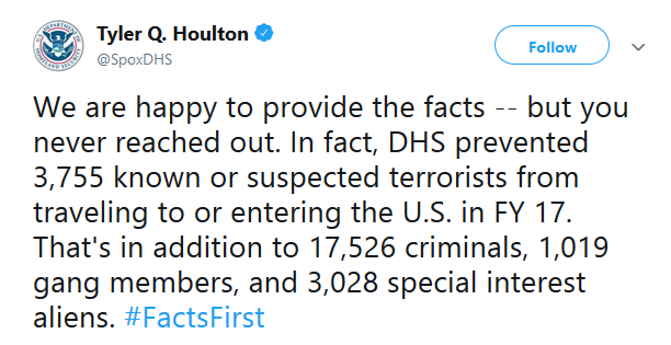 DHS Prevented 3,755 Known or Suspected Terrorists from Traveling to or Entering U.S. in FY 2017