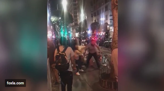 Man caught on video punching 2 women at Los Angeles hot dog stand