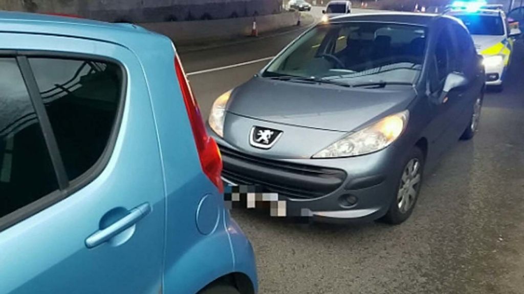 Derbyshire Roads Policing Unit posted pictures of the cars on Twitter, adding: “You couldn’t make this up. Very minor collision at the junction causing no damage.