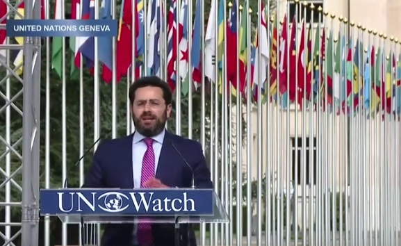 U.N. Watch executive director Hillel Neuer had spoken for around 20 seconds before the presiding officer silenced him and moved on to the next speaker on the schedule.