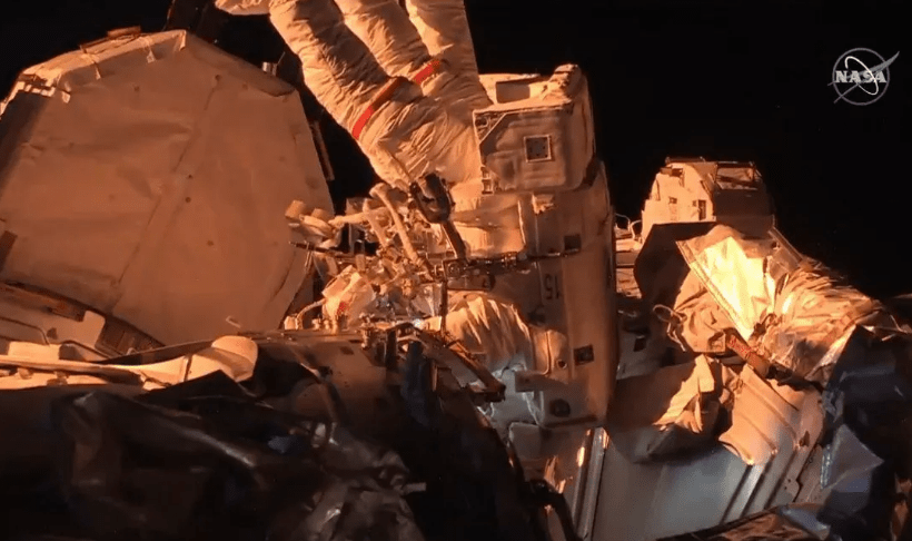 NASA astronaut Anne McClain and Canadian Space Agency astronaut David Saint-Jacques are out on a Monday spacewalk to continue work on a project to upgrade the station’s power systems.