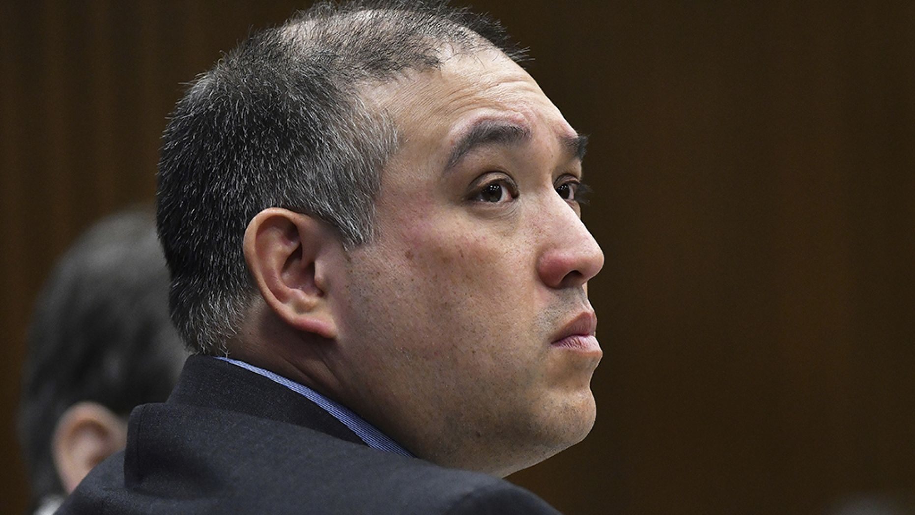 In this April 10, 2019, file photo, former Michigan state Trooper Mark Bessner listens to Assistant Wayne County Prosecutor Matthew Penney deliver his opening statement in Bessner’s trial, in Detroit. (Clarence Tabb Jr./Detroit News via AP, File)