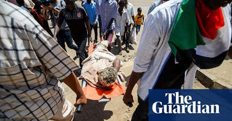 Sudanese protesters carry an injured man on a stretcher after the attack in Khartoum. Photograph: