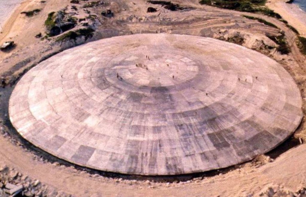 In the late 70s, waste from those tests was dumped into a crater and capped with a concrete dome 18 inches thick.