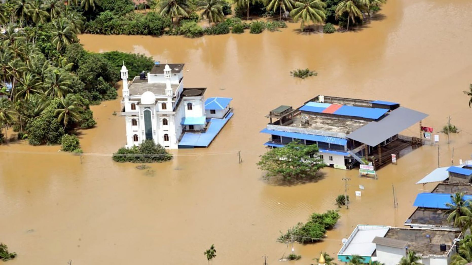 A flooded area of Malappuram district, Kerala as seen from an Indian Navy helicopter Sunday. (Indian Navy via AP)