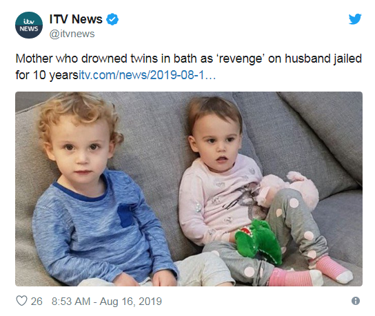 UK Mother Who Drowned Toddlers Gets 10 Years in Prison, Social Media Users Outraged