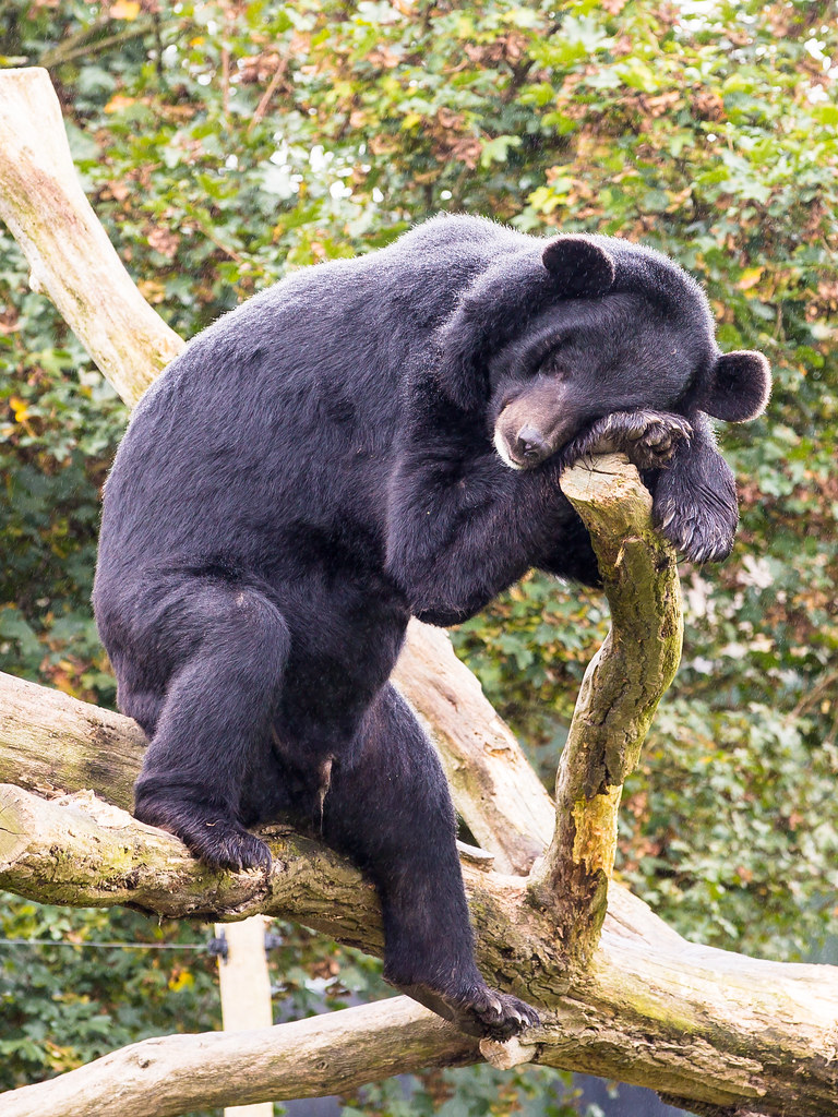 When the park officials tried to chase it away from the campground the bear was stumbling so bad it couldn’t walk straight and climbed a tree to take a nap.