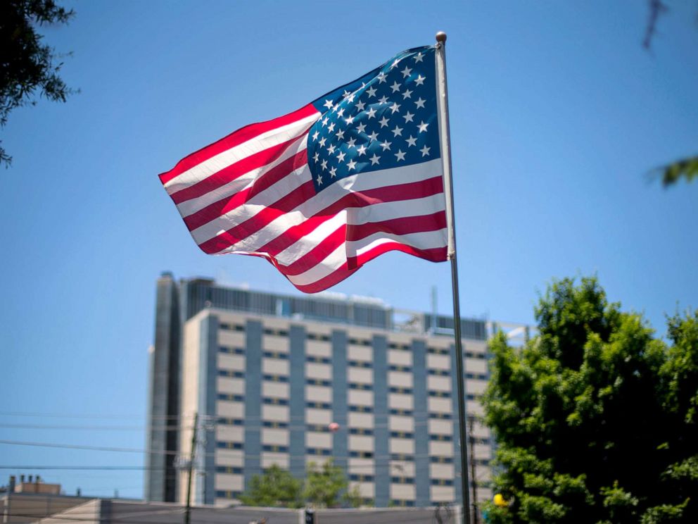 An American flag flies in front of the Atlanta VA Medical Center in Atlanta,