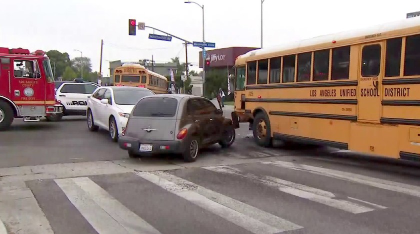 Several children hospitalized after school bus crashes in Inglewood