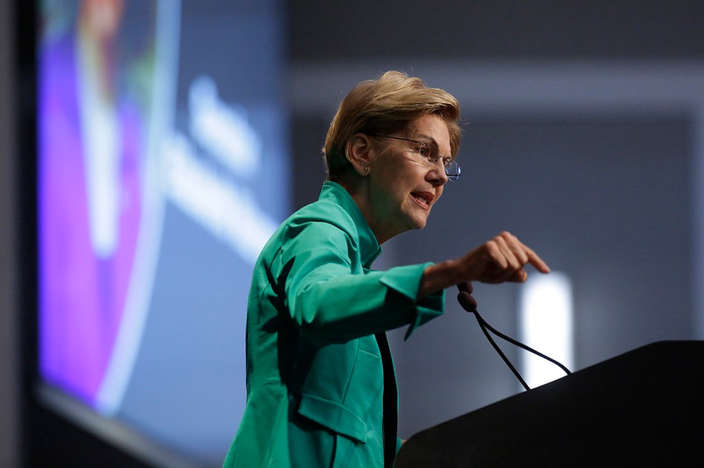ALTOONA, IA – AUGUST 21: Democratic presidential candidate Sen. Elizabeth Warren (D-MA) speaks at the Iowa Federation Labor Convention on August 21, 2019 in Altoona, Iowa. (Photo by Joshua Lott/Getty Images)