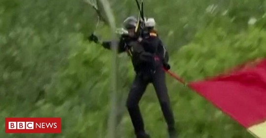 Parachutist hits lamp-post on Spain’s national day in Madrid