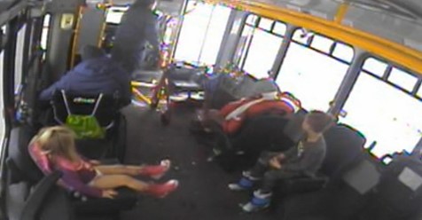 Surveillance video from inside the bus released by the Waukesha Police Department shows Chamberlain taking off her coat to use it to warm up the children.