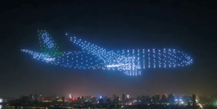 A Swarm of 800 Drones Create a Giant Airplane in the Sky