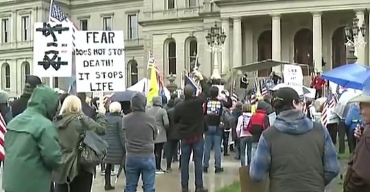 Whitmer’s stay-at-home orders protested outside Michigan Captiol as scuffle breaks out