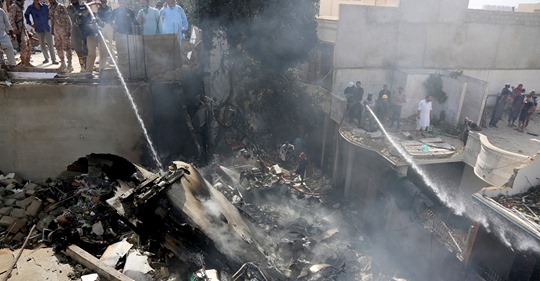 Pakistan International Airlines flight crashes, with nearly 100 people on board