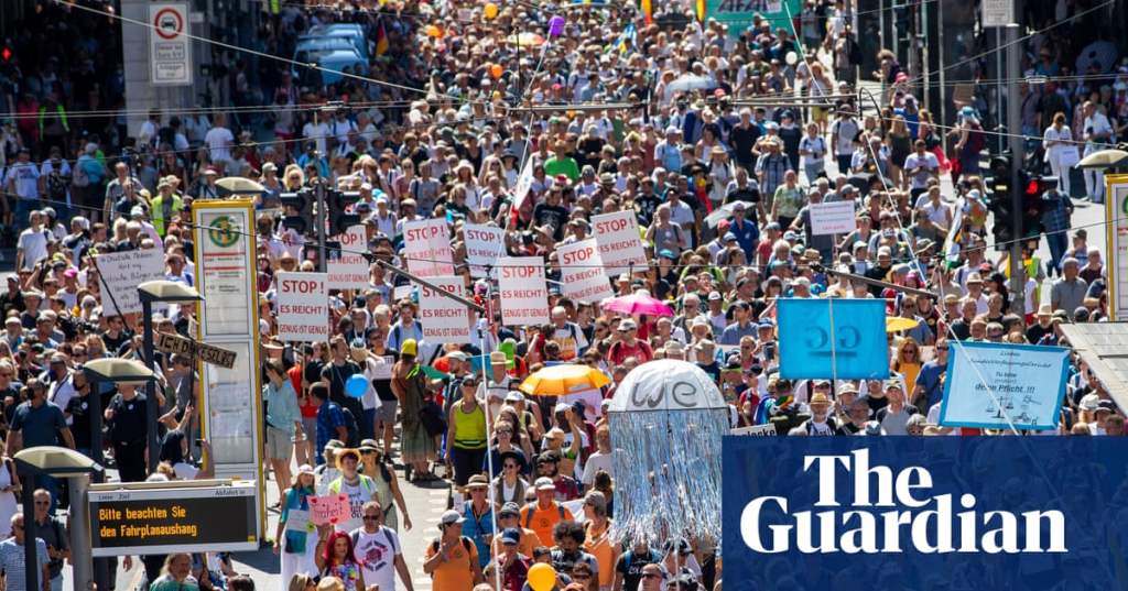 Up to 17,000 people, including libertarians and anti-vaccination activists, have marched in Berlin to protest against Germany’s coronavirus regulations.