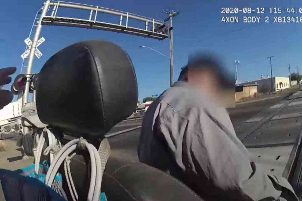 A veteran police officer saved a 66-year-old man in a wheelchair stuck on railroad tracks from being hit by an oncoming train on Wednesday in Lodi, California.