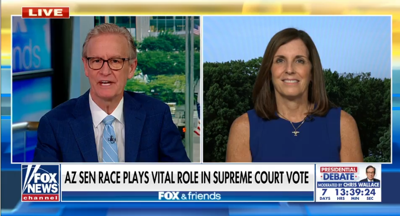 Tuesday on Fox News Channel’s “Fox & Friends,” Sen. Martha McSally (R-AZ), who is in the middle of a tough election fight with Mark Kelly, dismissed the suggestion her race might sway her vote on the confirmation of a Supreme Court justice.