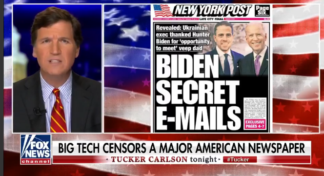 ‘Tucker Carlson Tonight’ host calls out Big Tech monopolies for censoring New York Post’s report.