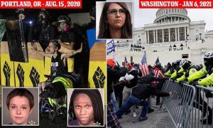 The letter claims Oregon prosecutors signed off on at least a dozen ‘deferred resolution agreements in federal felony cases’ from clashes in last year’s BLM protests, while some Capitol rioters have been held in solitary confinement.