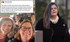 A Texas Democrat pictured prominently without a mask on a private jet last week fleeing to Washington, D.C. is now calling for universal face coverings regardless of vaccination status after she and five others in the group tested positive for COVID-19.