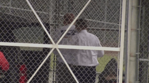 Immigrants were spread out over a span of dirt, many sitting or lying on blankets. Others stood, chatting with companions.