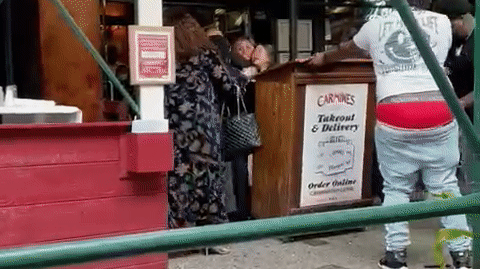 Tourists were captured on camera attacking a hostess at Carmine’s Italian restaurant in New York City after asking for proof of vaccination.