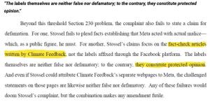 Technically speaking, Facebook farms out its “fact-checking” to outside organizations, usually left-wing groups. In the case of Stossel’s video that was defamed, the outside website is called “Climate Feedback,” which is also named a defendant in the lawsuit.