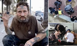 ‘This right now is literally by choice, literally by choice. If we’re going to be realistic, they pay you to be homeless here,’ James, a homeless man with face tattoos who has been living in San Francisco since June, told Michael Shellenberger, author of ‘San Fransicko,’ a book about how the city’s progressive leaders are worsening homelessness, inequality and crime.