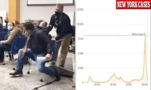 Unmasked father is forcibly removed from New York school board meeting