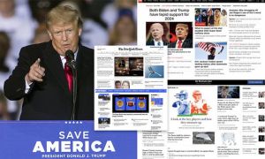 ‘Can you imagine that, what should be the biggest story of our time, bigger than Watergate, is getting absolutely no mention, ZERO, in the New York Times, Washington Post, ABC Fake News, NBC Fake News, CBS Fake News, ratings-dead CNN, and MSDNC,’ Trump said through his Save America PAC.