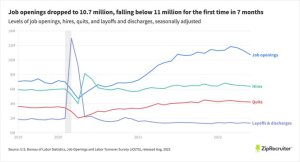 Economists had been expecting 11.1 million jobs in the June report on the government’s Job Openings and Labor Turnover Survey, or JOLTS. The sharper than expected decline indicates that demand for labor has plunged faster than economists expected.