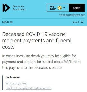 The Services Australia website now has instructions and forms for family members to fill out if the forced experimental COVID Vaccines kill someone in your family.