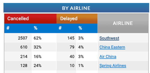 As of Wednesday morning, Southwest has scrapped 62% of flights today, plus 58% on Thursday, according to FlightAware data.