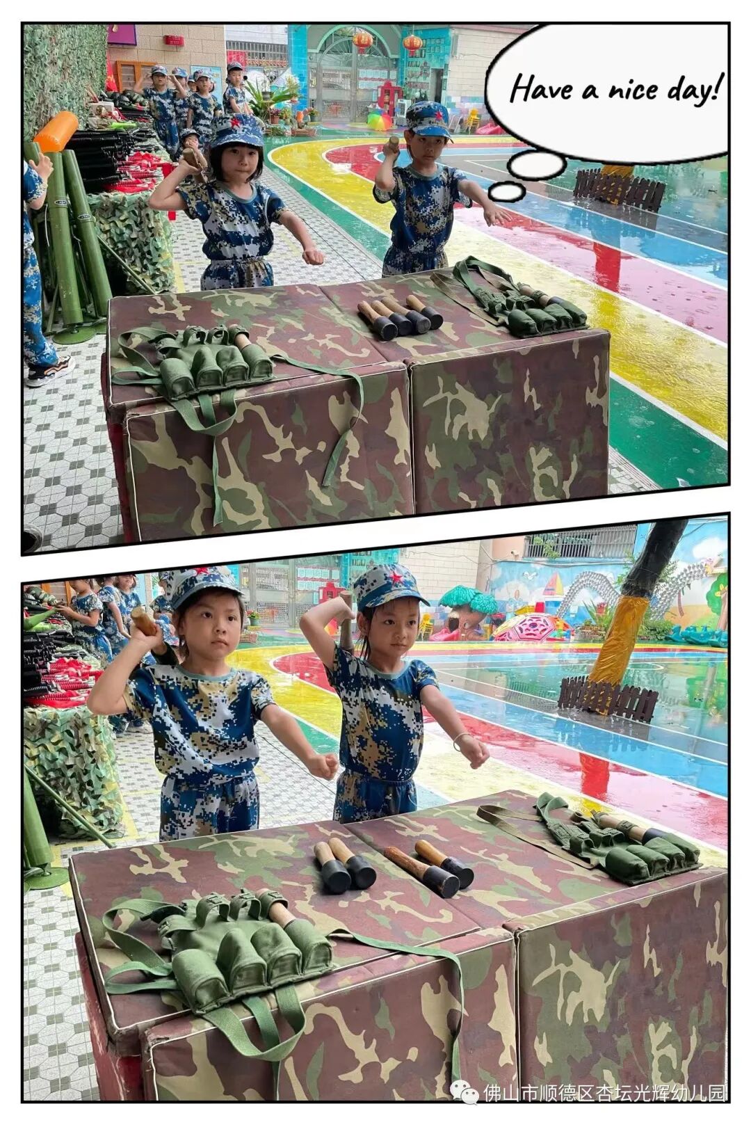 The boot camps feature combat training for boys and girls with a wide variety of toy weapons including knivesgrenadesrifles and shoulder-fired missiles, and require the children to adopt military behavior, such as saluting, the schools’ social media posts show.