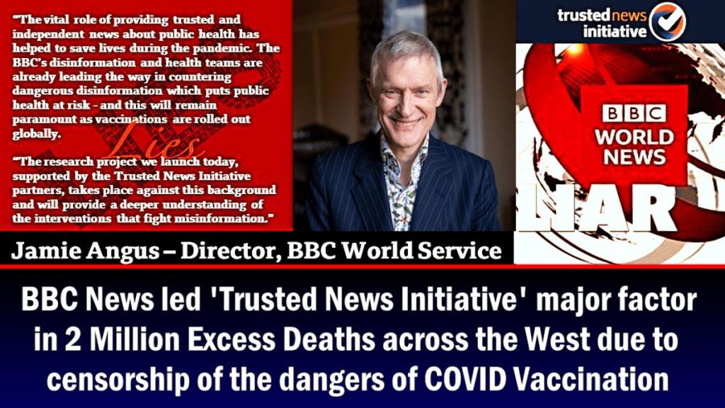 BBC News led ‘Trusted News Initiative’ major factor in 2 Million Excess Deaths across the West due to extreme censorship of the dangers of COVID Vaccination