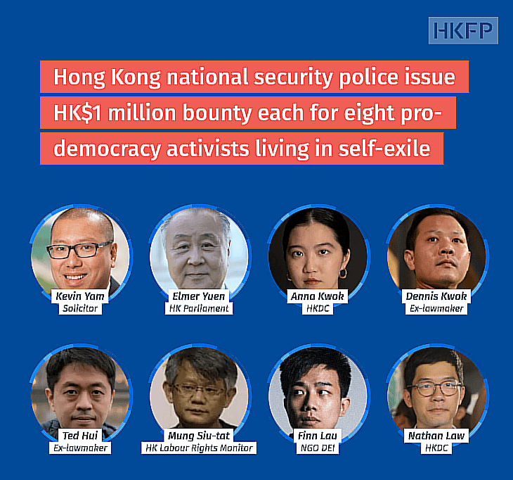 Hong Kong national security police have questioned seven relatives and acquaintances of two wanted activists, in the latest move against eight overseas-based pro-democracy figures for whom arrests warrants and HK$1 million bounties were issued.