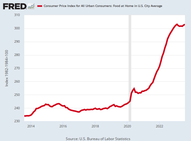 The cumulative effect has been devasting for the budgets of many households. Since February 2021, food-at-home prices are up 19.6 percent.
