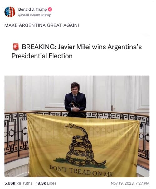 Trump, Tucker, Musk, MTG react to defeat of leftism in Argentina’s presidential election