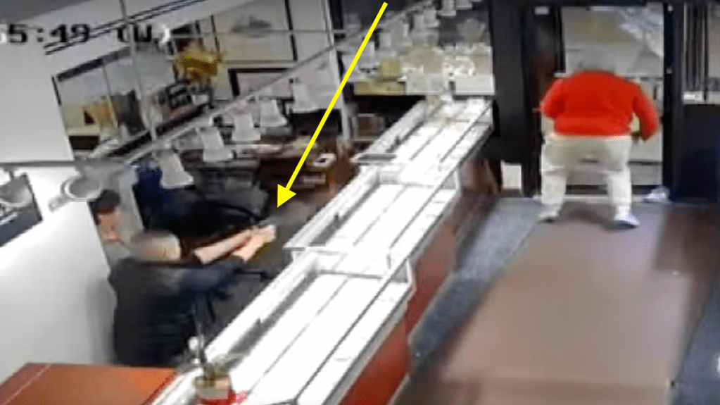 Surveillance video inside the store on Jeweler’s Row in the city’s Loop area on North Wabash Avenue shows the suspect walking around for about a minute before taking off toward the entrance just before 11 a.m. Saturday, WBBM-TV reported.