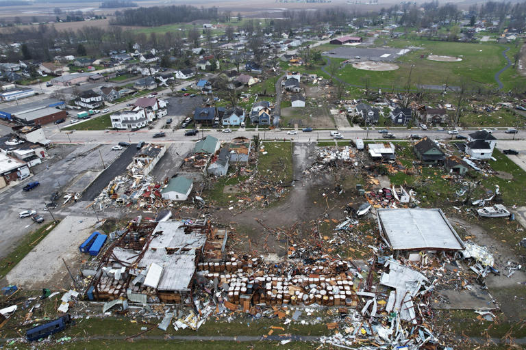 It appeared the worst hit was the Indian Lake area in Ohio’s Logan County, northwest of Columbus, with the villages of Lakeview and Russells Point devastated. At least three people died, said Sheriff Randy Dodds.