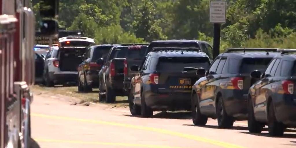 Scores of officers from several departments swarmed the area, which included large patches of woods.