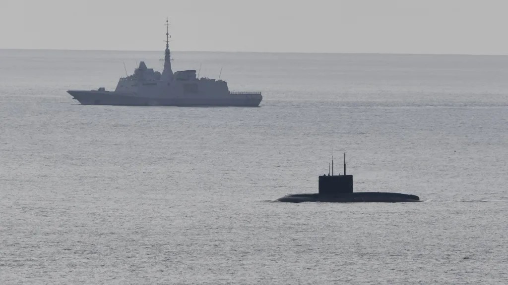A Russian submarine previously operating in the Mediterranean has surfaced off France after reports it suffered a fuel leak near Gibraltar, according to Reuters. NATO released photos of a French frigate monitoring the submarine, identified as the Novorossiysk.