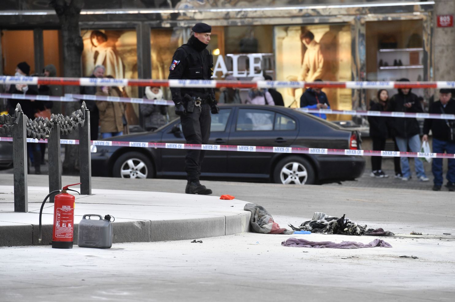 Police say the man born in 1964 poured an unspecified flammable liquid on himself at Wenceslas Square and set himself on fire Friday. They say that people who were nearby extinguished the fire.