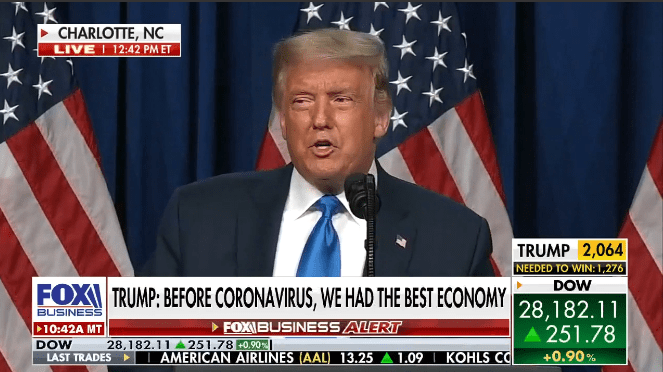 FOX Business VIDEO: President Trump makes his first remarks at the Republican National Convention about the economic recovery from the coronavirus pandemic in Charlotte, North Carolina.