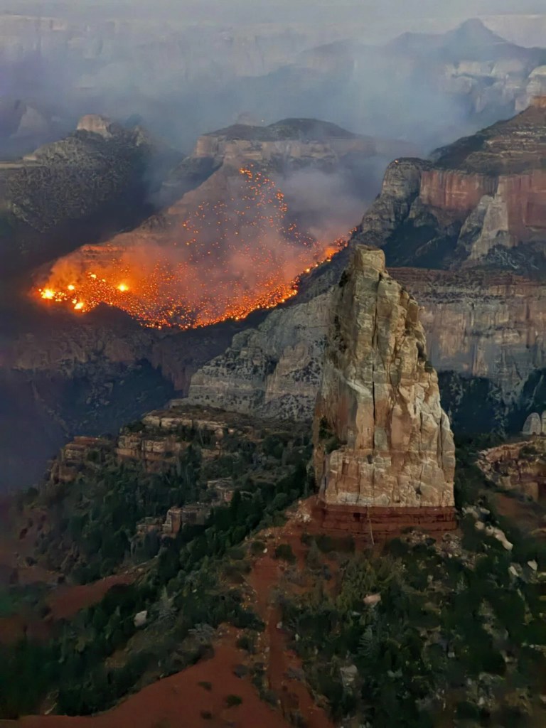 The Dragon Bravo Fire is seen at Point Imperial on Aug. 13, 2025. The Grand Canyon blaze is the largest current wildfire in the U.S.Courtesy Grand Canyon National Park