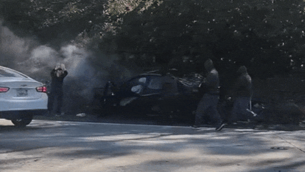 The witness spots the chase in a lane to his right and can be heard in the footage saying “Let me catch up.”