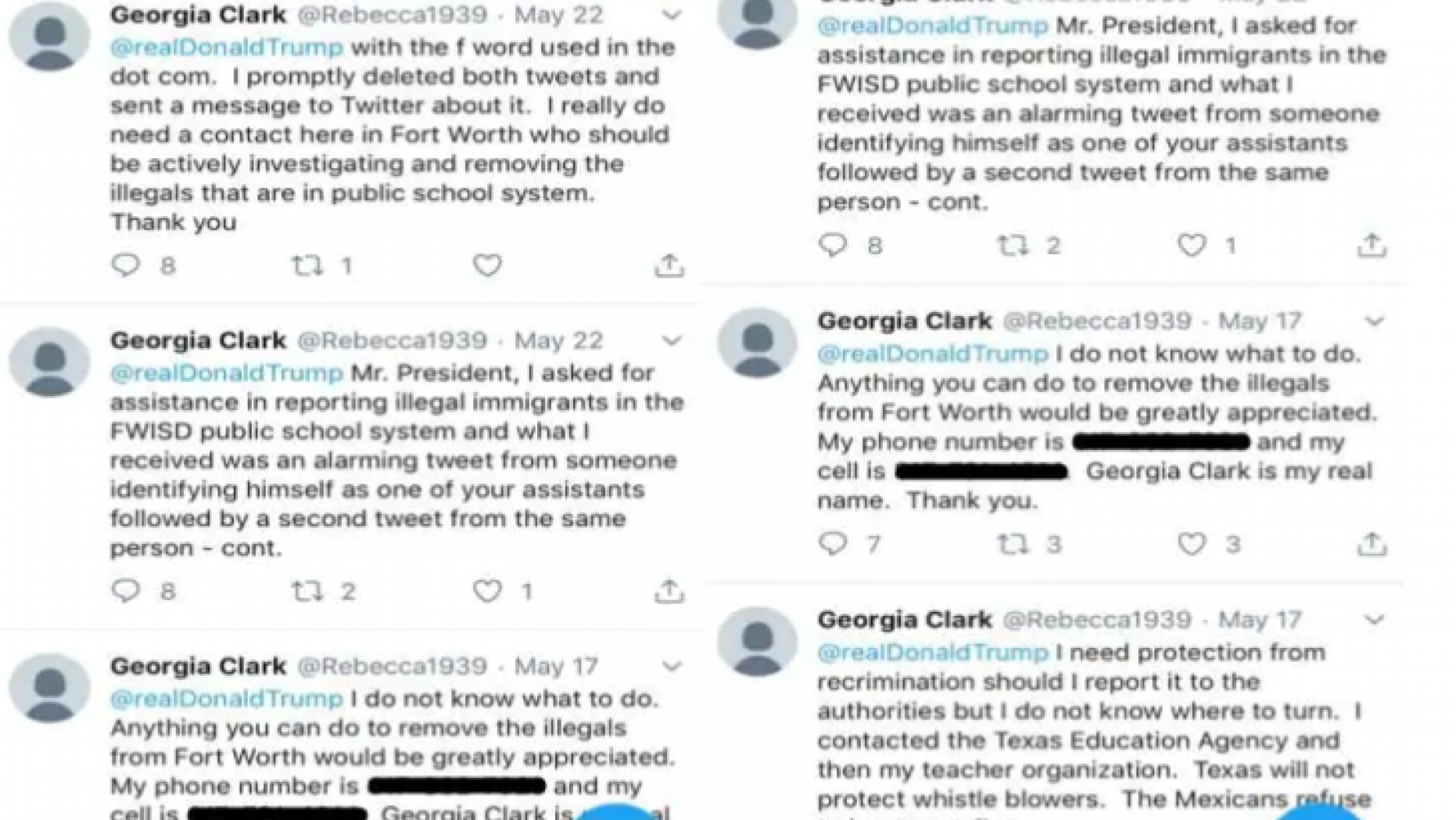 Georgia Clark, a former teacher at the Fort Worth Independent School District, messaged President Trump in a series of tweets she thought were private.
