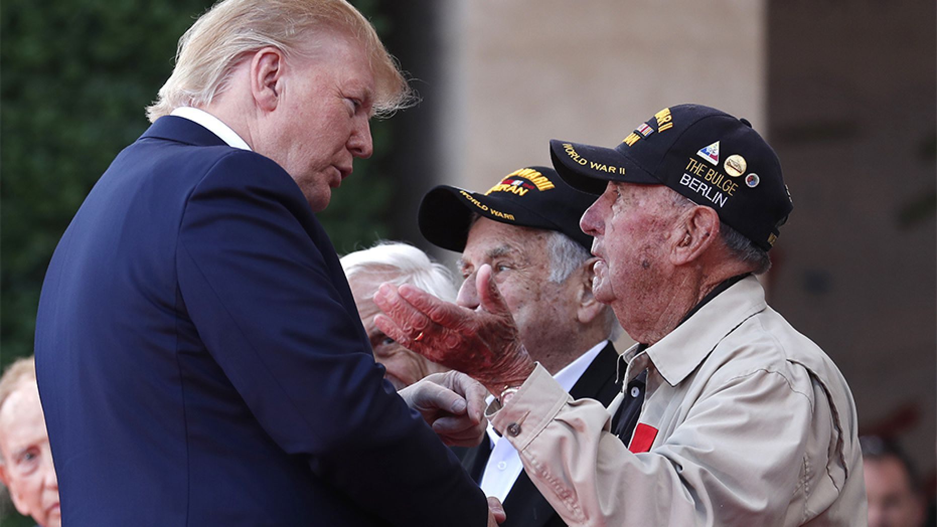 Trump recalled stories of individual veterans from the historic fight including Ray Lambert — a medic with four purple hearts and three silver stars who was badly wounded in the D-Day landing operation but survived.