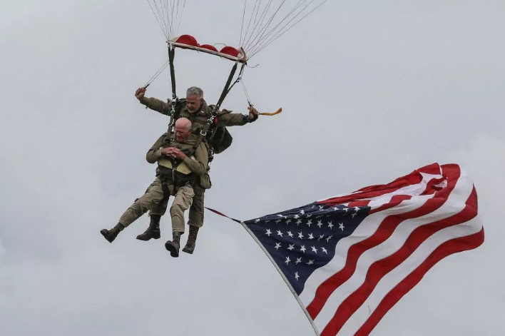 The American hero, who served with the 101st Airbone, jumped into Normandy with thousands of other parachutists in 1944, and recalls it as “the worst jump I ever had.”